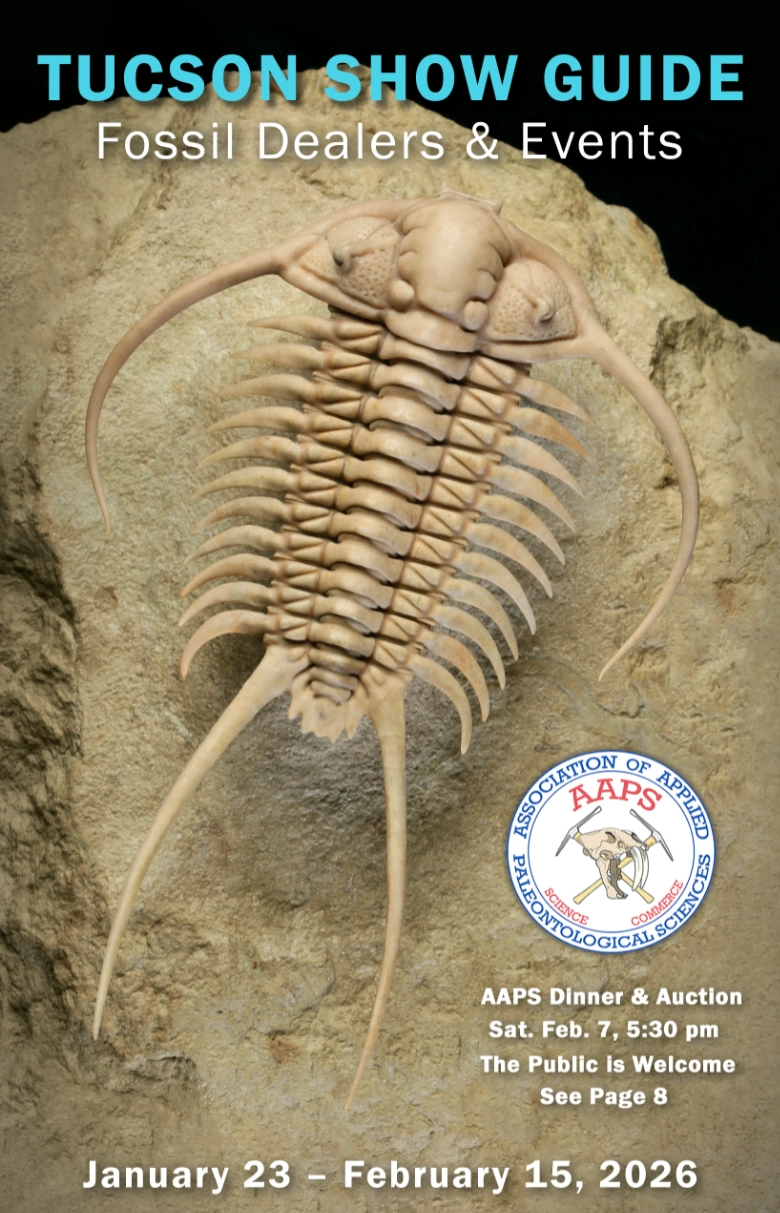 The Association of Applied Paleontological Sciences has published an annual guide since 2006, listing and promoting business members of the association. Many of the AAPS dealers sell at one or more of the over 50 show locations in Tucson during what has become the world’s largest mineral and fossil show starting the last week of January and running for 2 weeks each year.